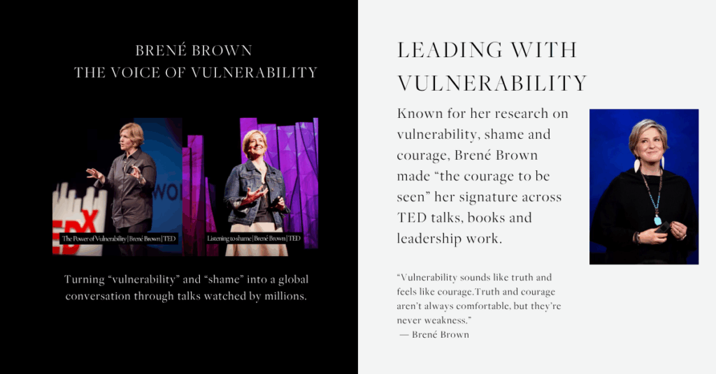 Brené Brown is synonymous with vulnerability research. She could have explored dozens of psychological topics, but she went deep on shame, courage, and authenticity. Now, when anyone thinks about vulnerability in leadership, her name surfaces immediately.