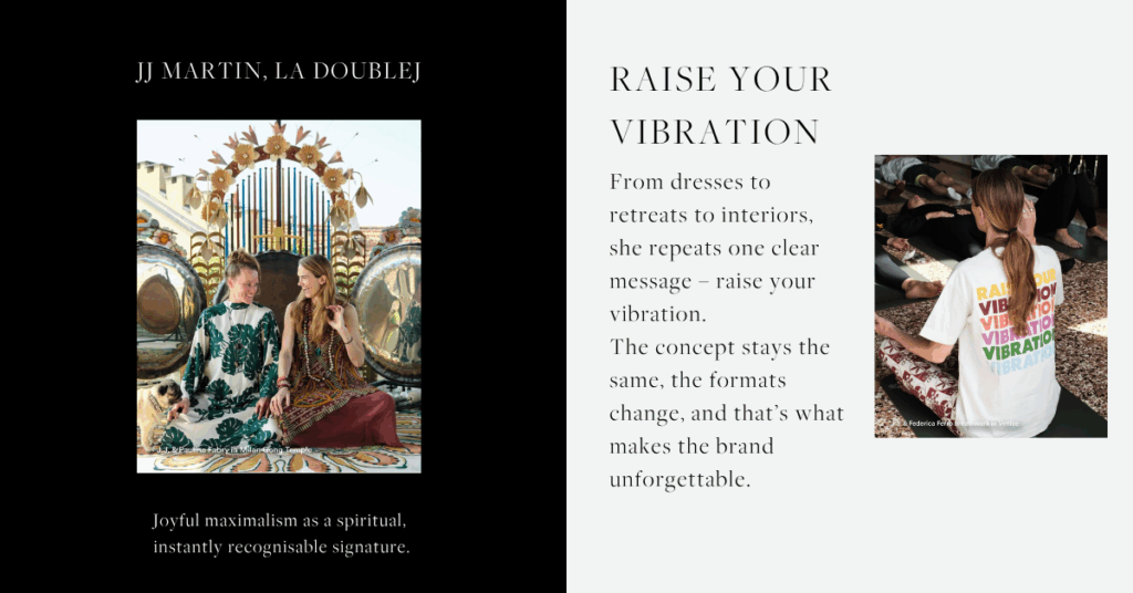J.J. Martin built La DoubleJ from her passion for vintage prints, bold colour, and joyful design. Over time, she infused the brand with her “raise your vibration” philosophy, blending fashion, spirituality, and maximalist design into a signature style that’s instantly recognisable in the fashion world.