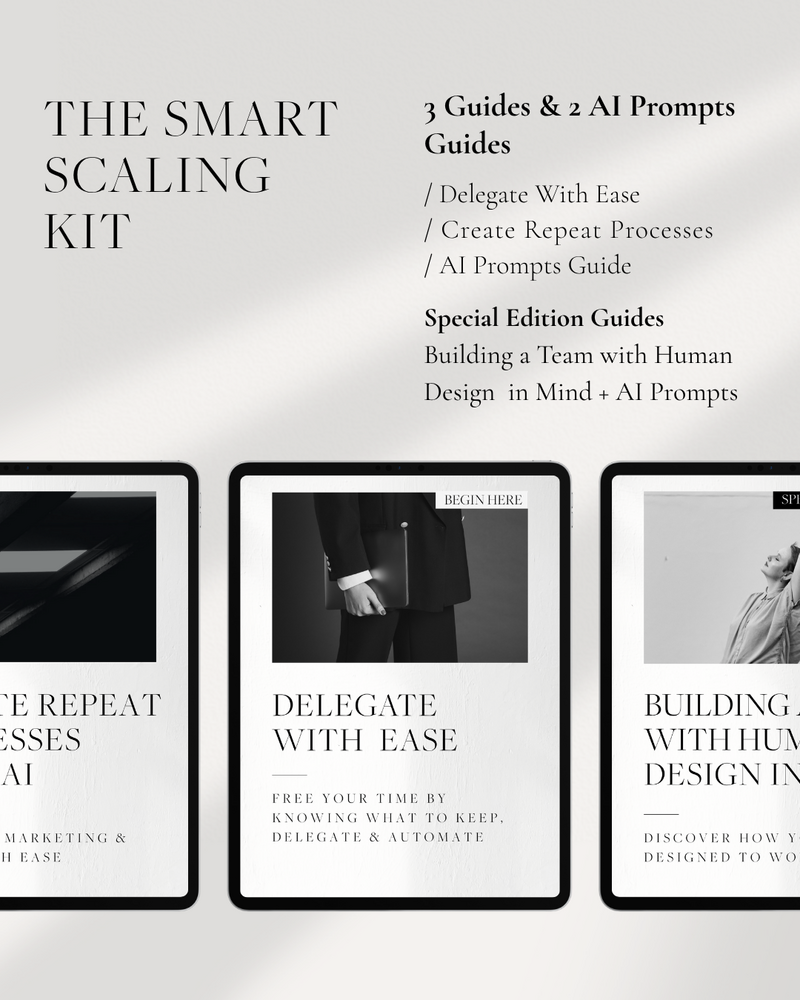 This powerful 5-part guide series is your blueprint for freeing up your time. You will learn how to delegate effectively, automate smartly, and surround yourself with the right support so you can stay in your zone of genius and grow without losing what makes your business personal. Includes a special edition on building your dream team.